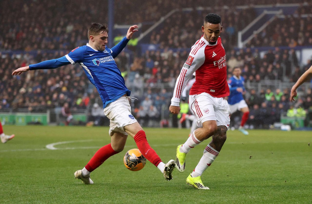 Aksi Gabriel Jesus (kanan) dalam laga Portsmouth vs Arsenal, lanjutan FA Cup ronde ke-3, Minggu 11 Januari 2026-Andrew Boyers-Reuters