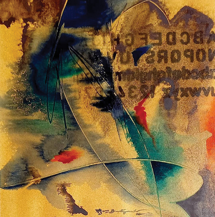 Seperti musik tetes hujan. Atau bunyi kicau pipit setelah hujan reda. Denting sendok yang mengaduk-aduk gula di dalam secangkir teh. ”Suara alam itu musik indah tak terkira. Rasa yang terdengar. Seperti itu pula cara saya menuangkan abstrak,” ujarnya. (Guruh Dimas)