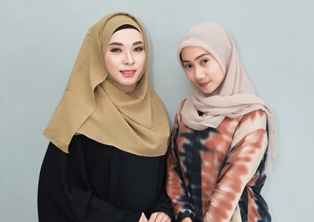 Make-up artist Fariska (kanan) bersama kliennya yang dirias saat dia mengenakan hijab. Namun sebenarnya riasan yang diterapkannya itu juga cocok jika tidak dengan memakai hijab. (Fariska untuk Harian Disway)