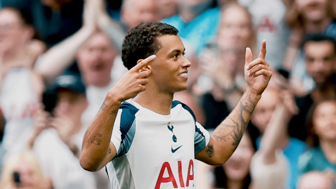 Brennan Johnson melakukan selebrasi setelah mencetak gol ketiga untuk Spurs saat melawan Burnley pada 16 Agustus 2025-@SpursOfficial-X