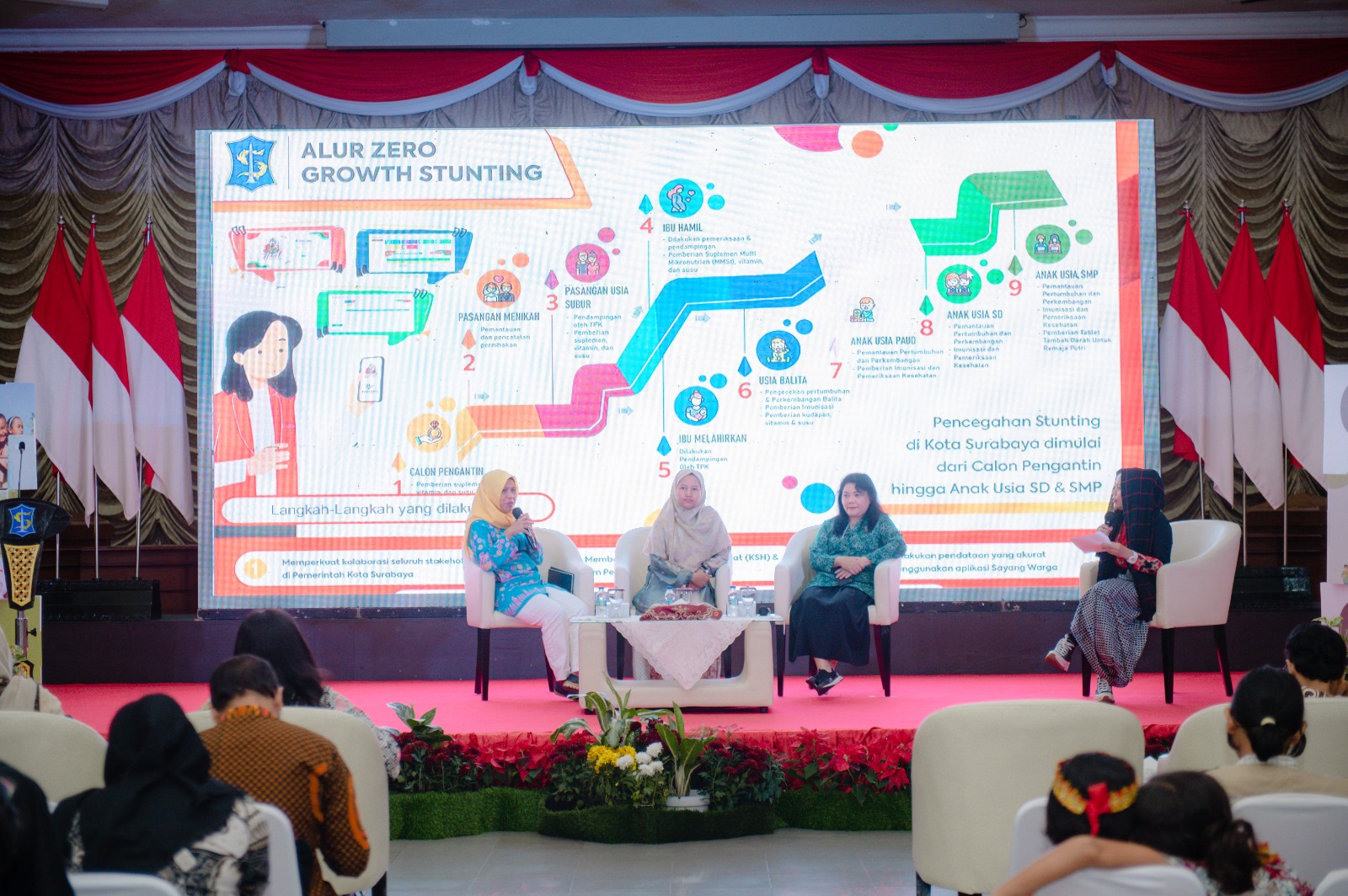 Ada Nanik Sukristina, S.K.M, M.Kes sebagai Kepala Dinas Kesehatan Surabaya, Dr. Berlian Beatrix R, Sp.A. sebagai Ketua Tim Penggerak PKK Kecamatan Wonocolo, dan ada Dr. Siti Rahayu Nadhiroh, S.KM, M.Kes yang merupakan Ketua Departemen Gizi FKM Unair.