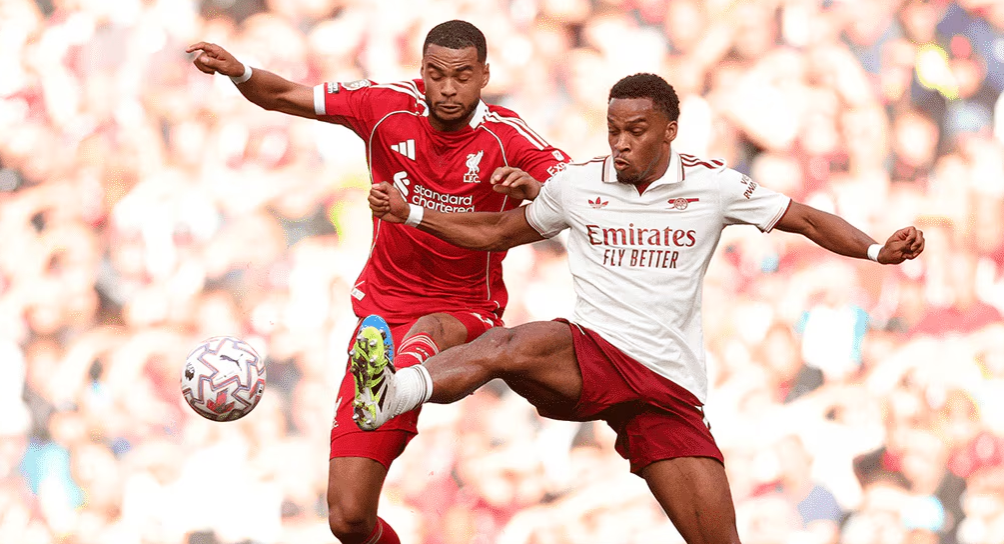 Duel Cody Gakpo (kiri) dan Jurrien Timber (kanan) di laga Liverpool vs Arsenal, Minggu, 31 Agustus 2025-Arsenal.com-
