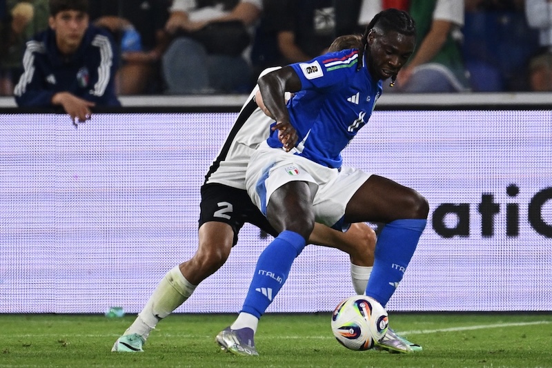 Italia vs Estonia 5-0, Moise Kean berupaya menembus pertahanan Estonia, 6 September 2025.-Andreas Solaro-AFP