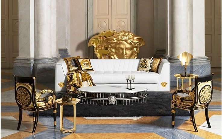 VERSACE memperkenalkan konsep Versace Home (1992) yang menawarkan dekorasi mewah dengan pola khas Versace yang ikonik. --Pinterest