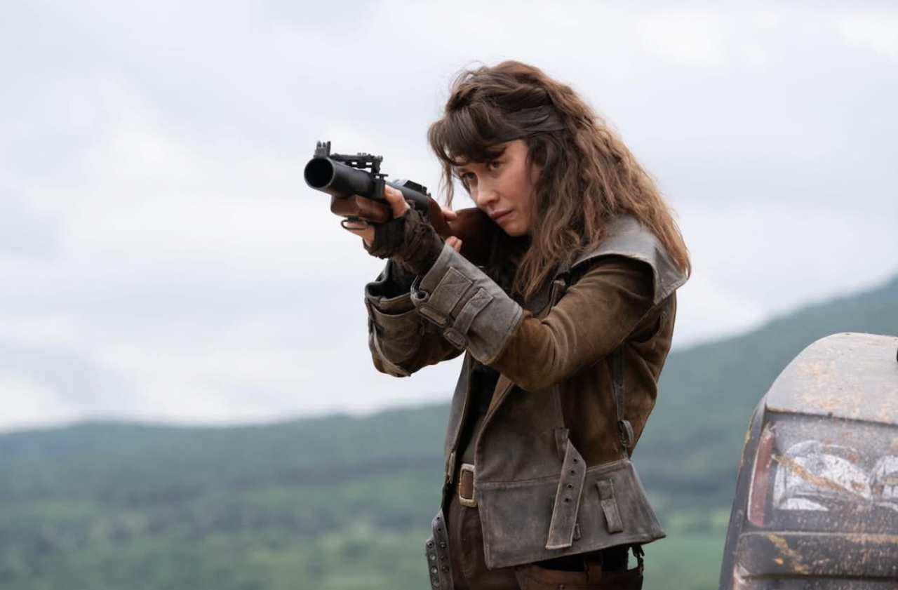 Sinopsis Afterburn, Dave Bautista jadi pemburu lukisan bersejarah pasca-kiamat. Foto: Olga Kurylenko tampil beda sebagai sekutu Dave Bautista.-Saban Films-IMDb