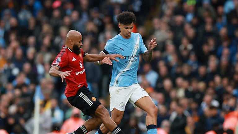 Aksi Bryan Mbeumo (kiri) kala Man Utd bertamu ke markas Man City di lanjutan Liga Inggris 2025/2026, Minggu, 14 September 2025-Reuters-