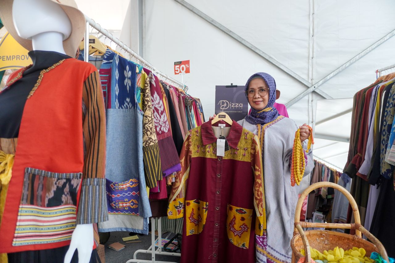Di lokasi festival, Harian Disway juga bertemu dengan Soesi Soekotjo. Dia adalah pemilik bisnis sekaligus desainer Dizza Batik yang sudah beroperasi sejak 2013.