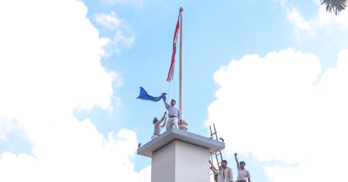 750 Bendera Semarakkan Teatrikal Kolosal Surabaya Merah Putih di Hotel Majapahit