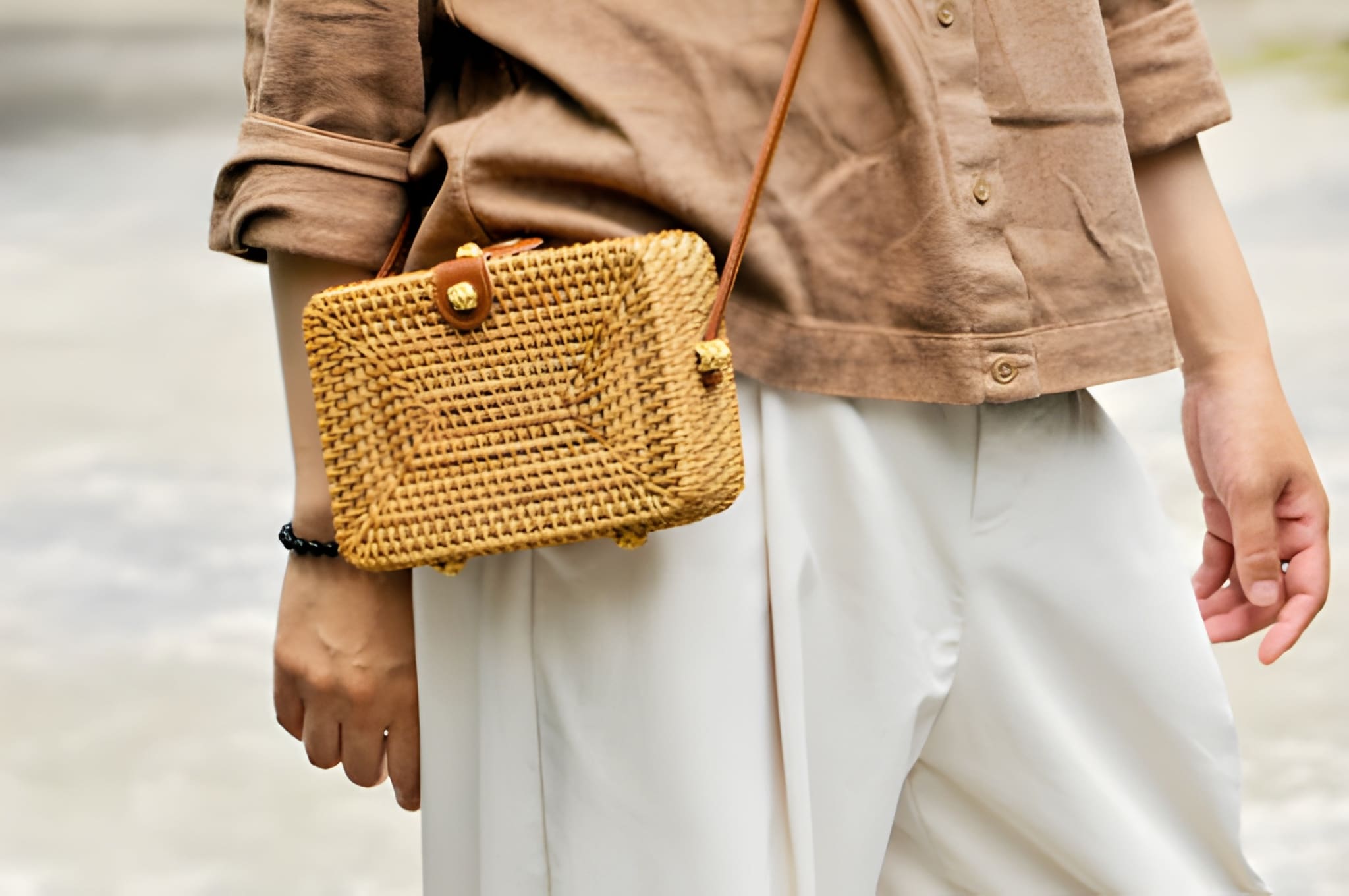 Tas anyaman dari rotan, pandan, atau eceng gondok kini kembali menjadi tren. Modelnya bisa berbentuk sling bag, clutch, hingga tote bag yang bisa dipakai sehari-hari. Selain itu, tas rajut berbahan tali juga sedang populer. Karena memberi kesan artsy dan stylish.
