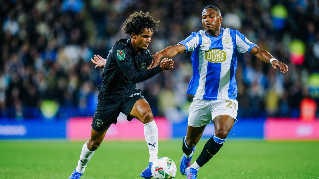 Oscar Bobb saat melawan Huddersfield di laga Piala Carabao pada 25 September 2025-@ManCity-X
