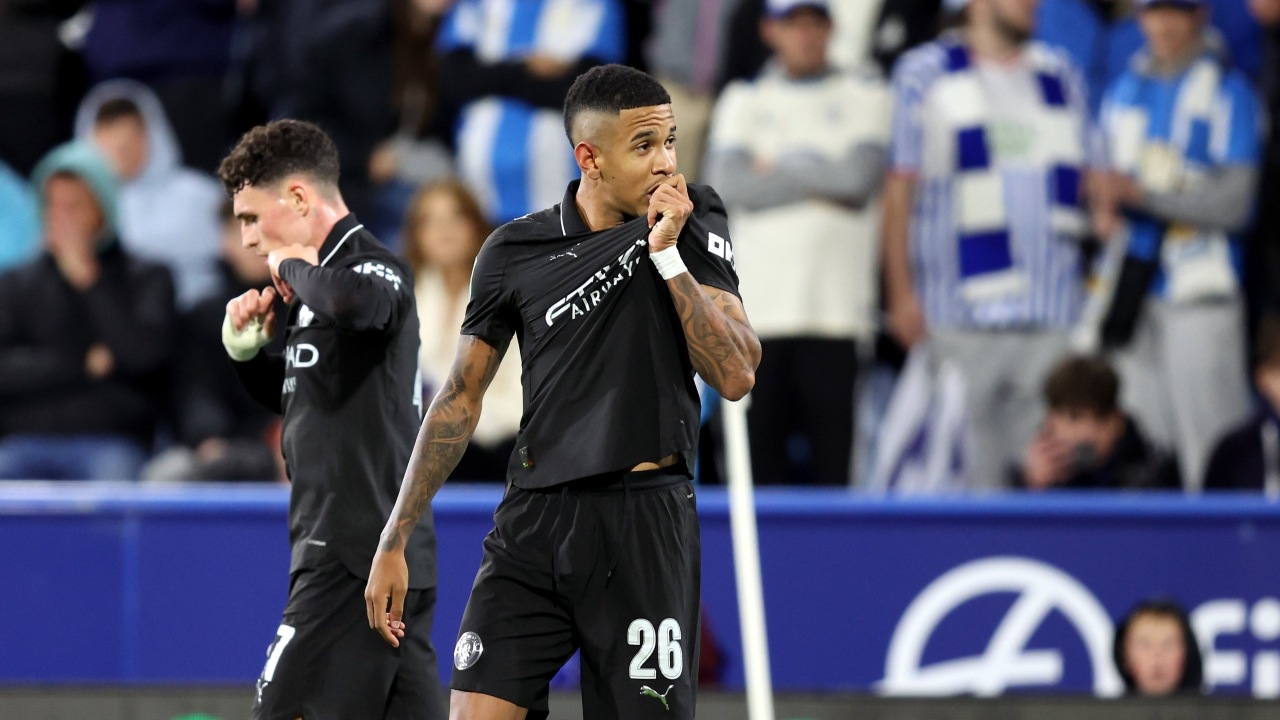 Savinho melakukan selebrasi usai cetak gol saat melawan Huddersfield di laga Piala Carabao pada 25 September 2025-@City_Xtra-X
