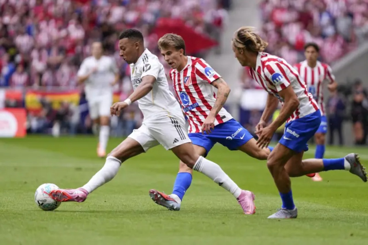 Aksi Kylian Mbappe dalam laga derby Madrid, Sabtu 27 September 2025--BBC Sports