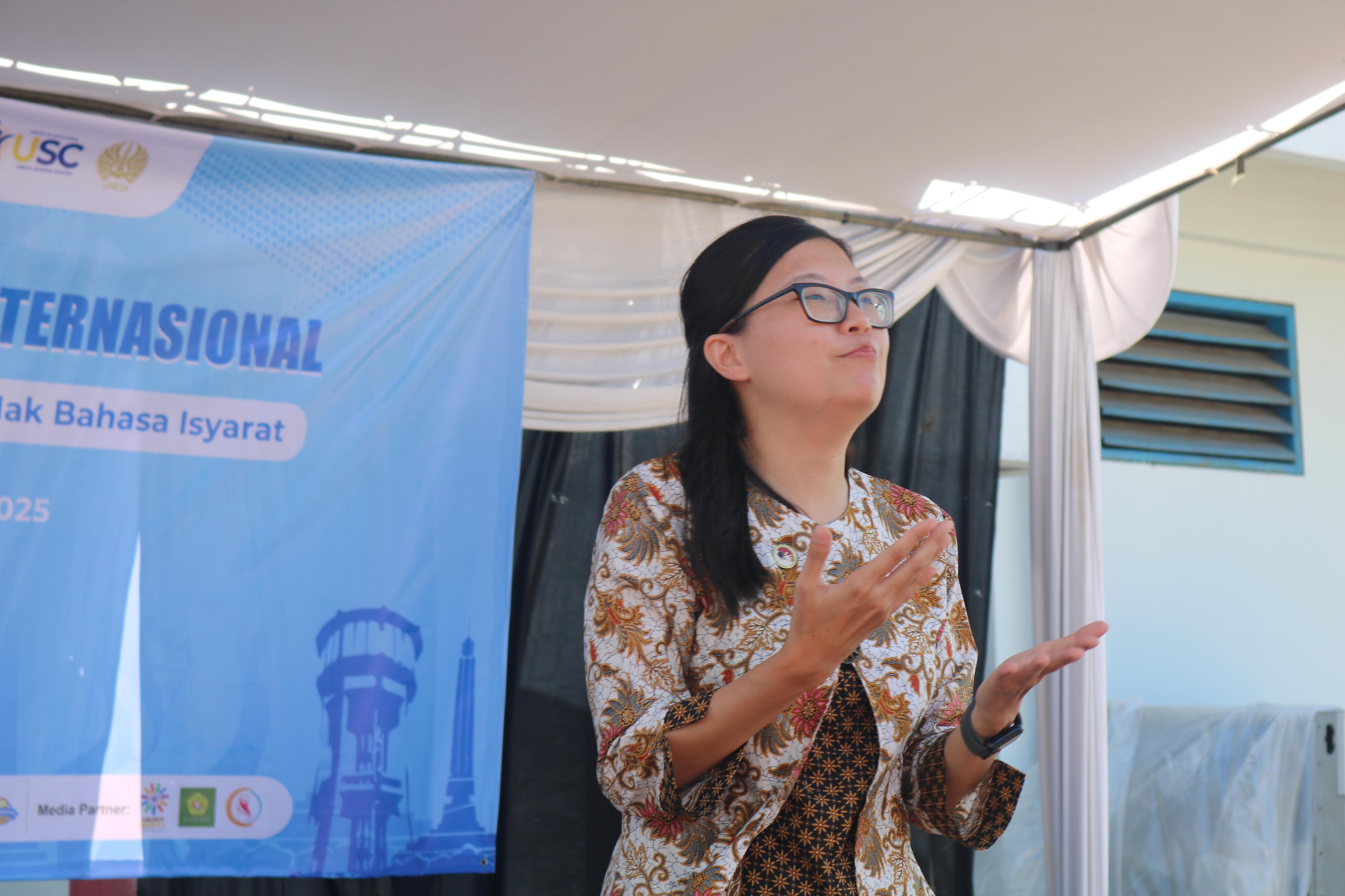 POTRET Michelle Layanto, Sekretaris Pusbisindo Pusat periode 2025-2030 yang menjadi narasumber di seminar Hari Bahasa Isyarat Internasional 2025. -GESTURA-