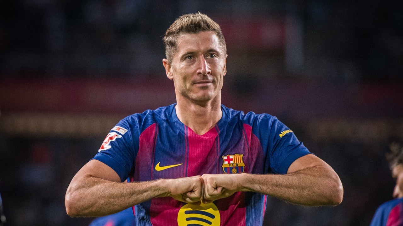 Robert Lewandowski melakukan selebrasi setelah mencetak gol untuk Barcelona saat melawan Real Sociedad di pekan ketujuh La Liga pada 28 September 2025-@FCBarcelona-X