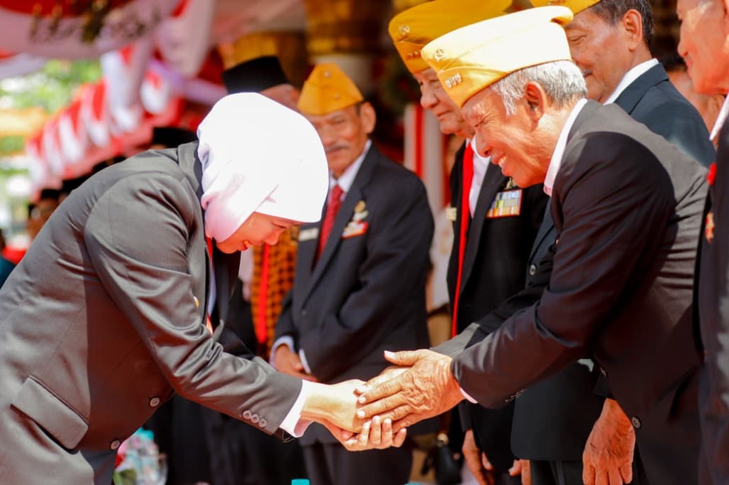 Khofifah menyambut peserta upacara dari LVRI Jawa Timur-Humas Pemprov Jawa Timur-