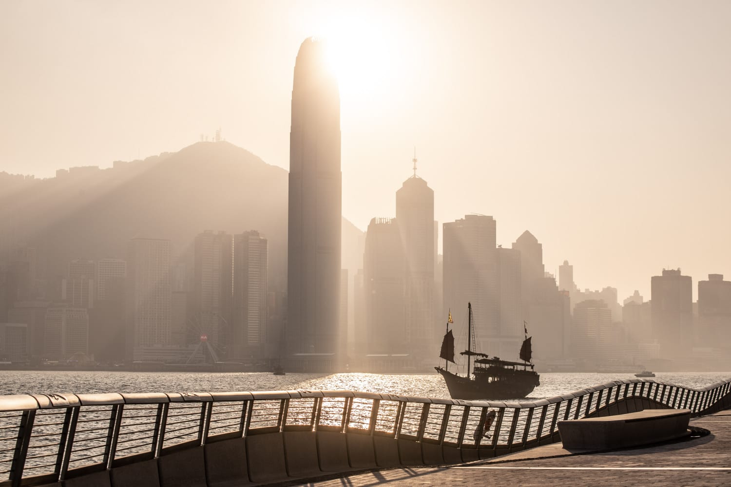 Pagar kayu artistik sepanjang 400 meter di Avenue of Stars, menyajikan pemandangan Victoria Harbour dan gedung-gedung megah.-Hong Kong Tourism Board-