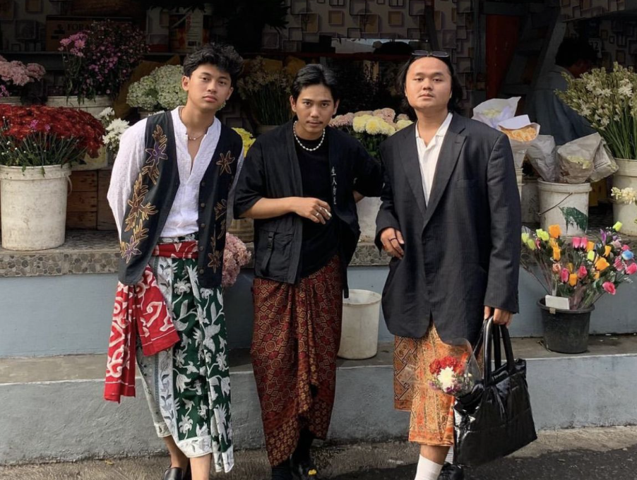 Outfit batik skena yang sedang menjadi tren di kalangan remaja Indonesia, memadukan kain batik dengan outfit hitam yang memberikan kesan maskulin dan elegan.-Pinterest-