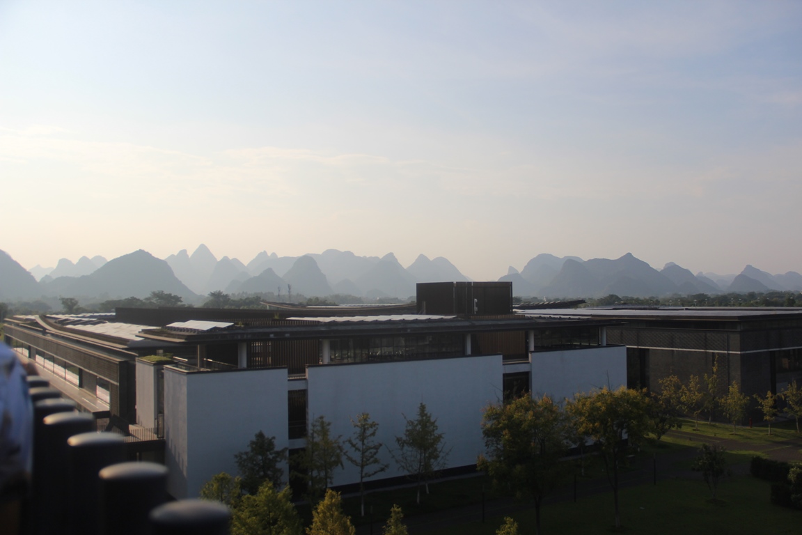 PEMANDANGAN KHAS Guilin dengan bukit-bukit karst yang menjulang terlihat dari areal Integral, Esquel Group.-Doan Widhiandono-
