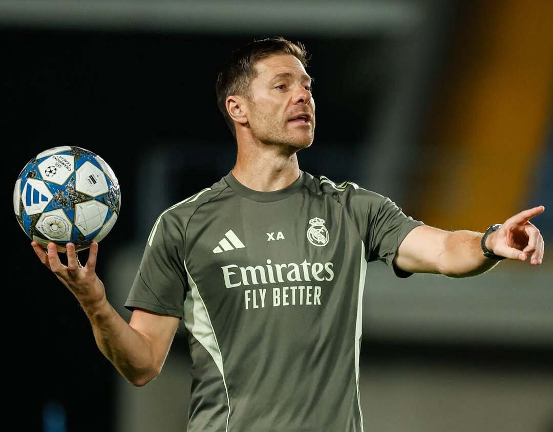 Pelatih Real Madrid, Xabi Alonso, ketika memimpin sesi latihan tim jelang hadapi Kairat Almaty di pekan kedua Liga Champions 2025/2026.--Instagram @realmadrid
