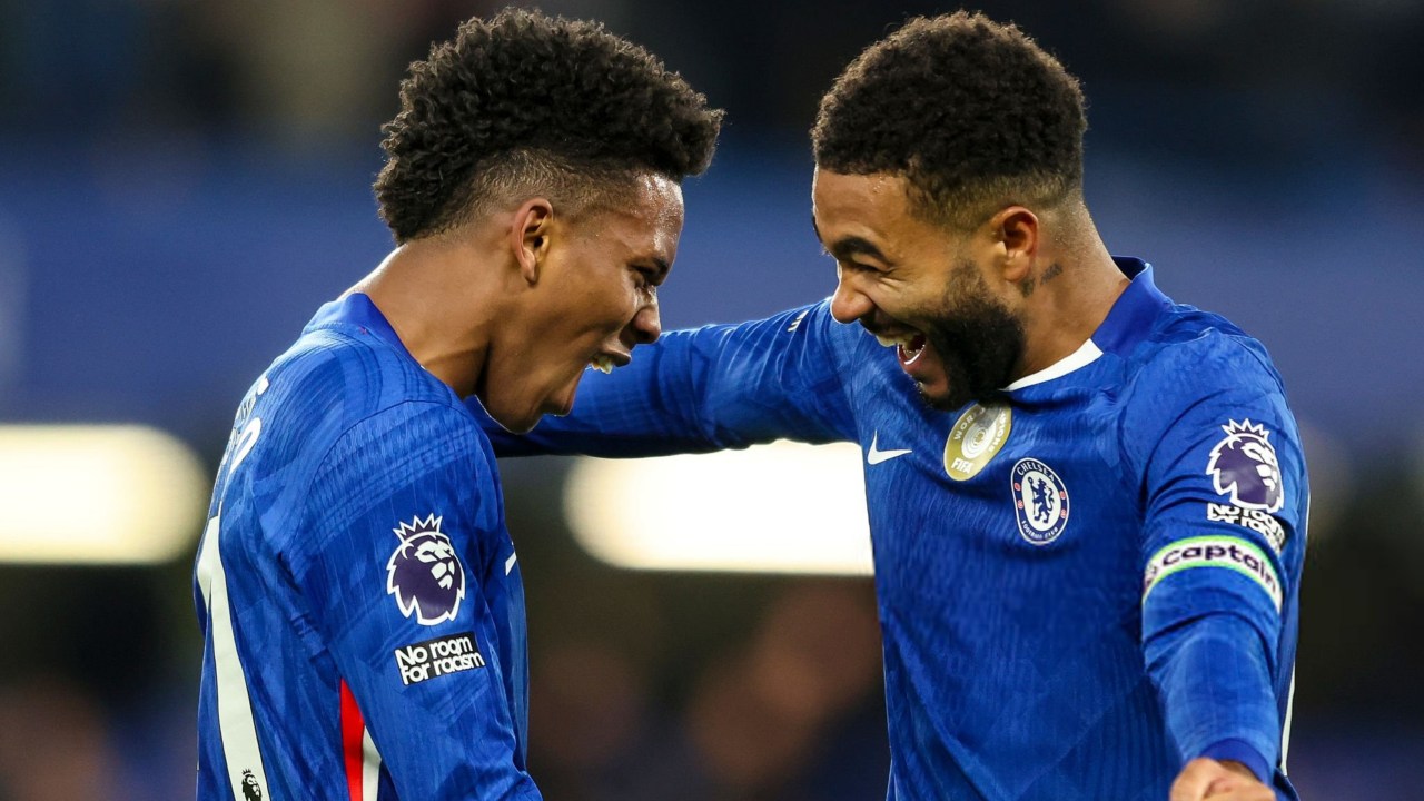 Estevao melakukan selebrasi dengan Reece James setelah mencetak gol saat Chelsea melawan Liverpool di laga Premier League pada 4 Oktober 2025-@Mohxmmad-X