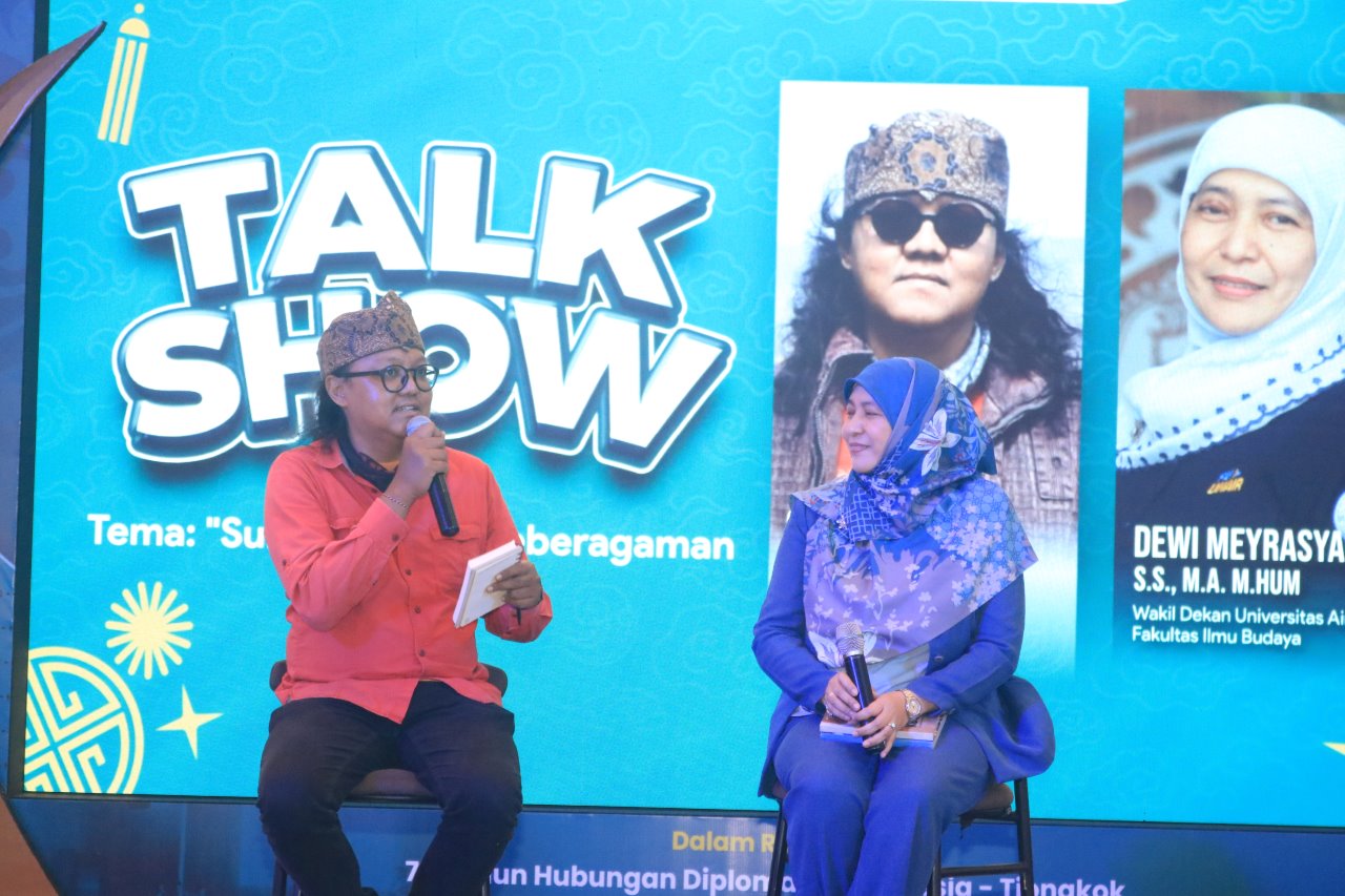 HARIAN DISWAY - Pada hari ketiga gelaran Disway Mandarin Debate and Speech Competition 2025, 5 Oktober 2025, digelar talkshow yang dimoderatori oleh Guruh Dimas Nugraha dari tim redaksi Harian Disway, menghadirkan narasumber Dewi Meyrasyawati, Wakil Dekan FIB Universitas Airlangga.