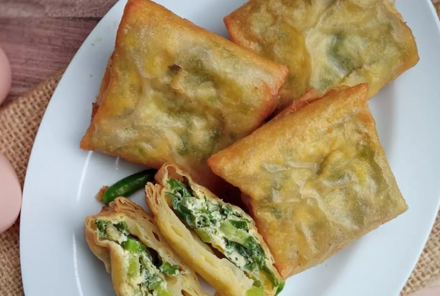 Gunakan kulit lumpia, isi dengan adonan telur, daun bawang, dan sedikit daging cincang atau sosis, lalu goreng hingga kecokelatan.