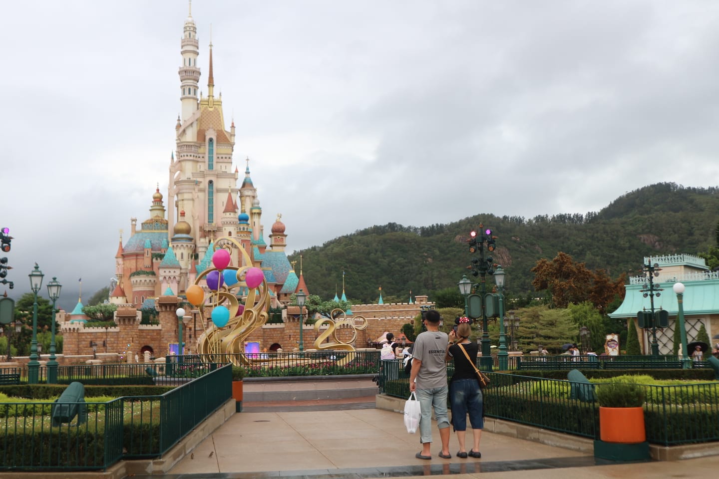 Lebih masuk ke dalam, semakin banyak papan hiasan dengan tulisan tersebut. Menandai perayaan ulang tahun ke-20 Hong Kong Disneyland.