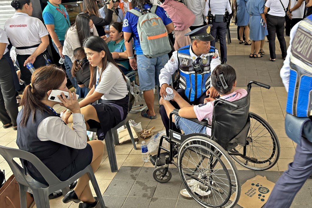 Orang-orang berkerumun di depan sebuah mall di Kota Butuan, Mindanao bagian Selatan, Filipina pasca guncangan gempa berkekuatan M7.4 yang melanda negara kepulauan tersebut-Erwin Mascarinas/AFP-