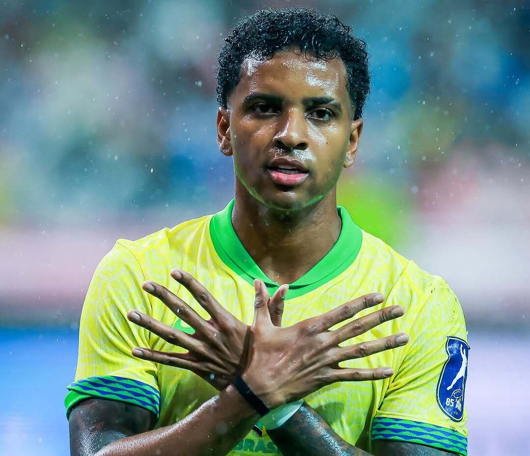 Selebrasi penyerang Real Madrid, Rodrygo, usai membobol gawang Korea Selatang. Jumat, 10 Oktober 2025.--Instagram @brasil