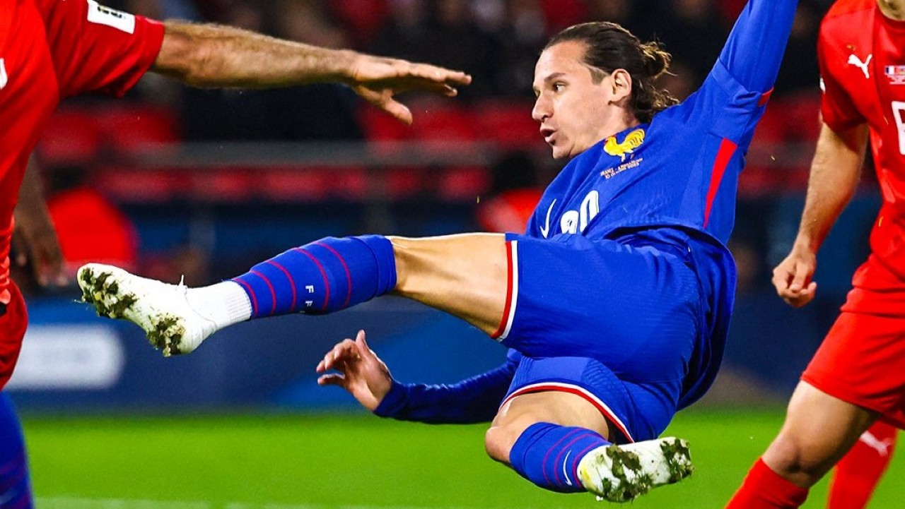 Florian Thauvin mencetak gol akrobatik saat Prancis melawan Azerbaijan di laga fase grup Kualifikasi Piala Dunia 2026 Grup D pada 11 Oktober 2025-@brfootball-X