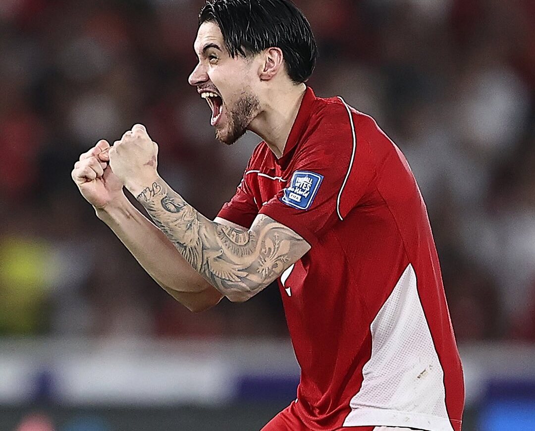 Selebrasi Bek Timnas Indonesia, Kevin Diks, usai mencetak gol keduanya ke gawang Arab Saudi. Kamis, 9 Oktober 2025--Instagram @433