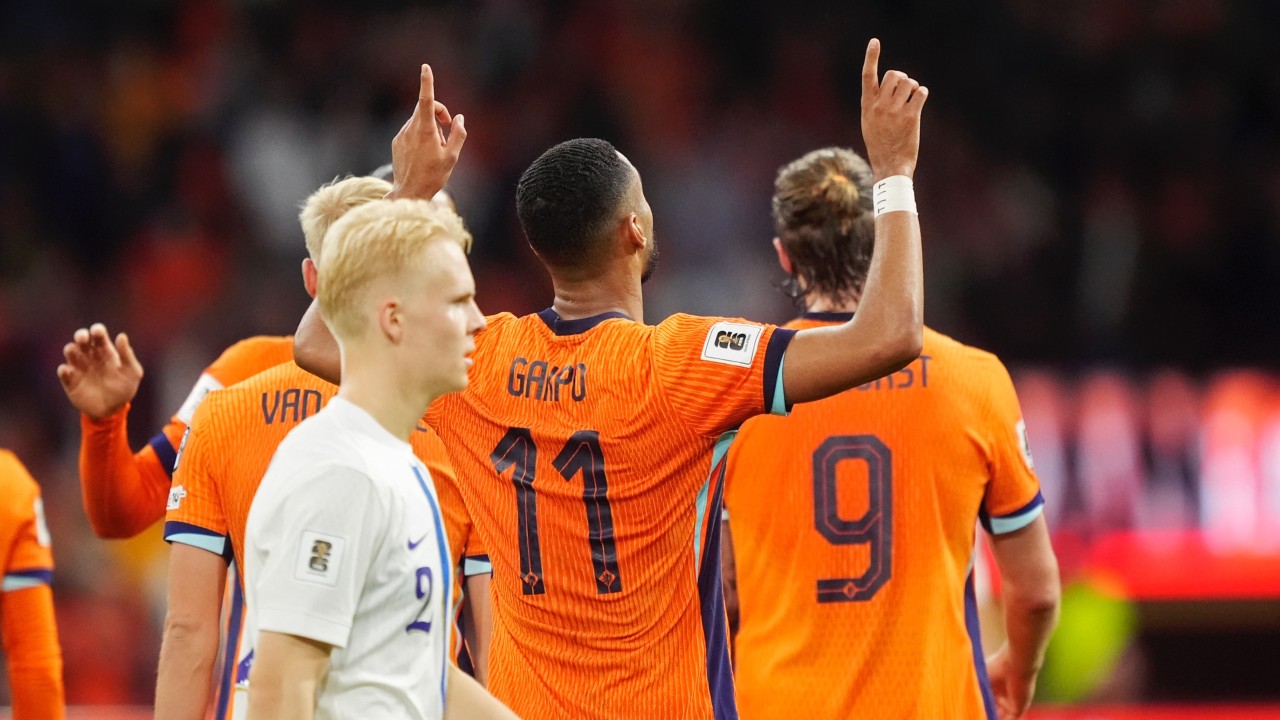 Cody Gakpo melakukan selebrasi setelah mencetak gol keempat untuk Belanda saat melawan Finlandia di Kualifikasi Piala Dunia 2026 Grup G pada 12 Oktober 2025-@OnsOranje-X