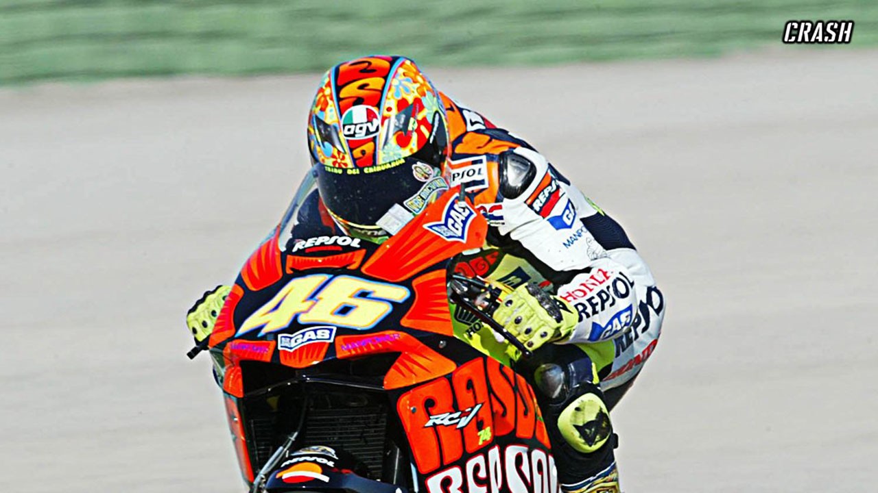 Valentino Rossi dalam balapan terakhirnya bersama Repsol Honda pada tahun 2003.-X @crash_motogp-X @crash_motogp