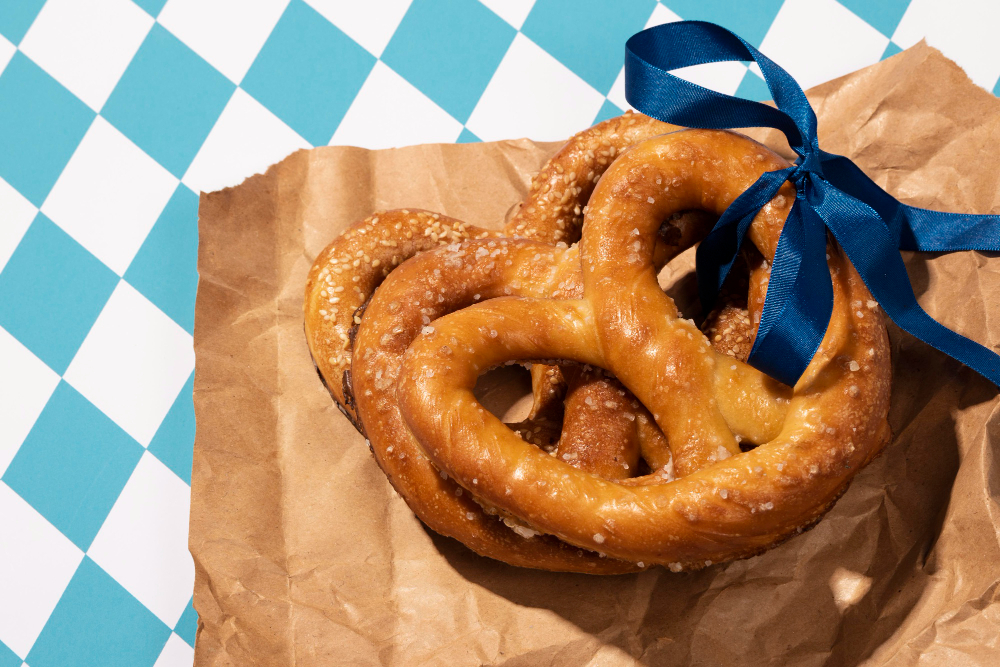 Pretzel telah ada di Eropa sejak abad ke-8. Meskipun asal-usulnya masih diperdebatkan, makanan itu menjadi salah satu hidangan wajib dalam Oktoberfest.