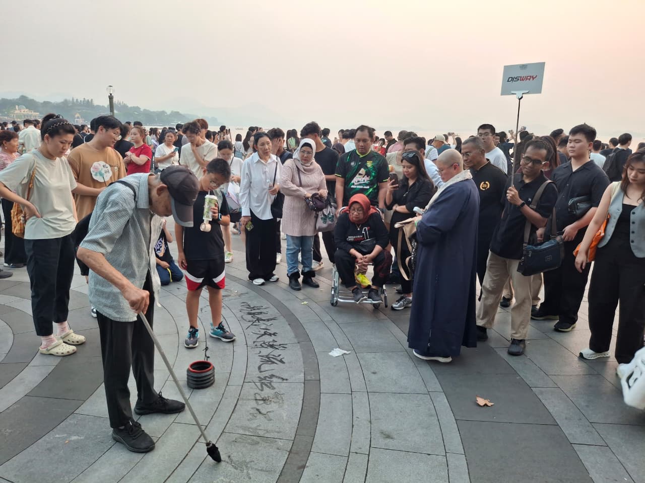 HANGZHOU, HARIAN DISWAY – Hari pertama Business Adventure Vol. 3 Harian Disway seperti menjawab cita-cita para peserta. Tidak sekadar jalan-jalan. Tapi menambah pengalaman. Juga jejaring. Matahari HANGZHOU begitu bulat saat rombongan mendekati 西湖 (Xi Hu) alias Danau Barat, HANGZHOU, Provinsi Zhejiang, Tiongkok. Pemandangan elok itu menjaga semangat para peserta yang berjalan kaki dari hotel, Minggu, 12 Oktober 2025.