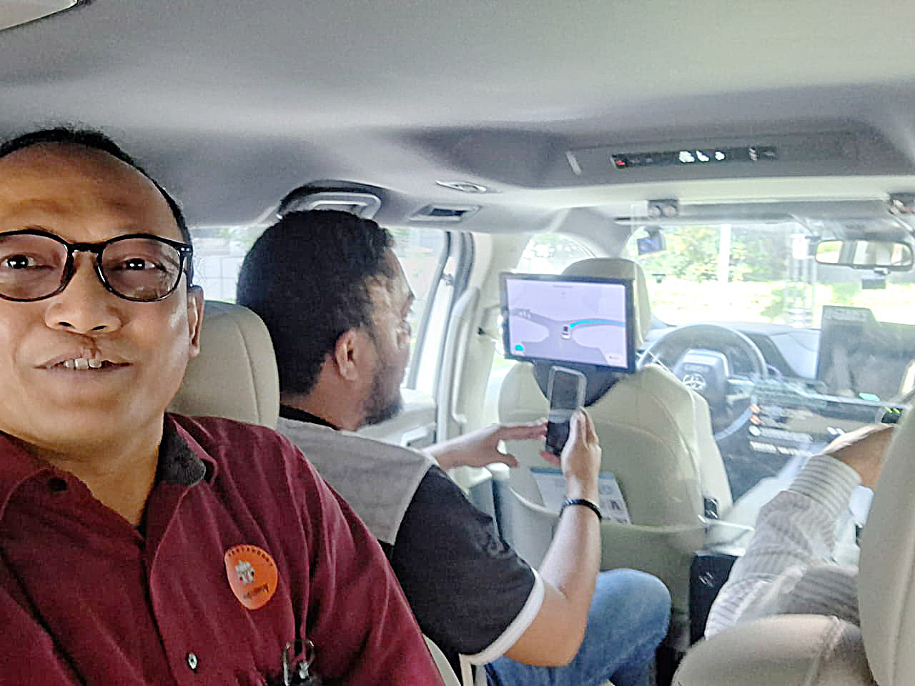 Dan ’’saking soprannya,’’ mobil robot yang kami naiki itu ogah mengklakson. Jadinya, ya, kami harus menunggu…