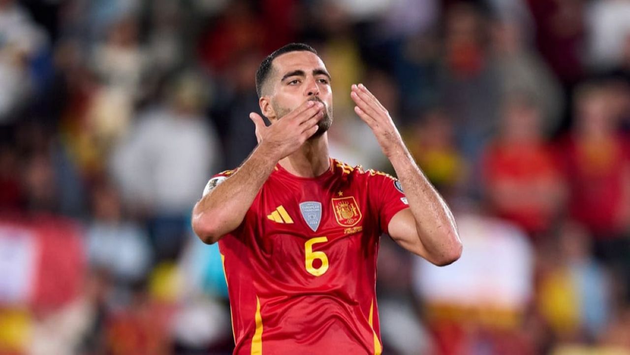Mikel Merino melakukan selebrasi setelah mencetak gol untuk Spanyol saat melawan Bulgaria di laga Kualifikasi Piala Dunia 2026 pada 15 Oktober 2025-@SpainIsFootball-X