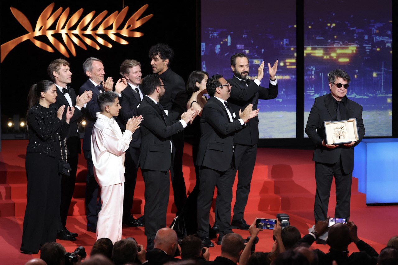5 fakta menarik It Was Just an Accident, thriller Iran yang mengguncang festival film Eropa. Foto: Jafar Panahi dan para aktor menerima Palme D'Or di Festival Film Cannes, Mei 2025. -Valeri Hache-AFP