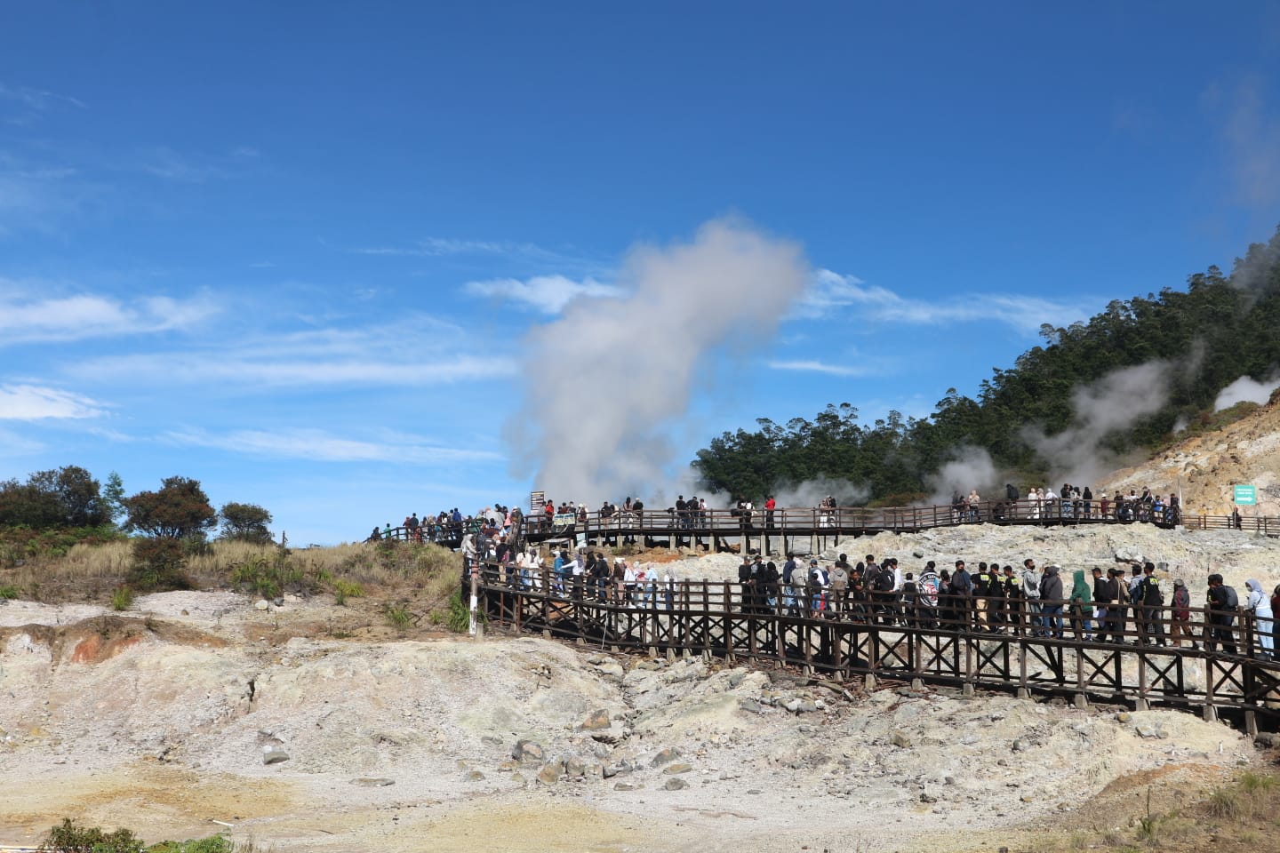 Asap belerang di Bukit Sikidang. Itu merupakan kawah aktif terbesar di Dataran Tinggi Dieng.-Guruh D.N.-HARIAN DISWAY