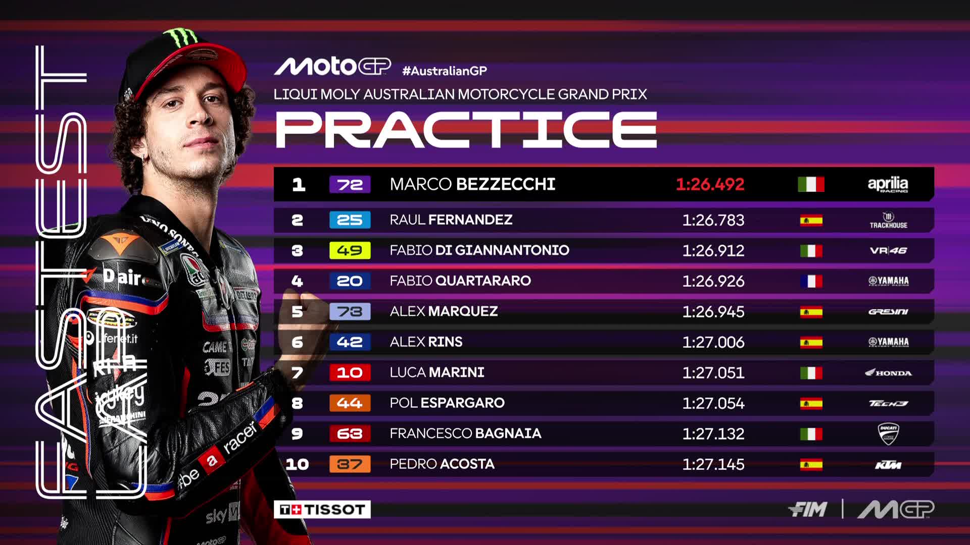 Berikut daftar 10 pembalap tercepat di sesi Practice Race GP-Australia 2025--Twitter MotoGP @MotoGP