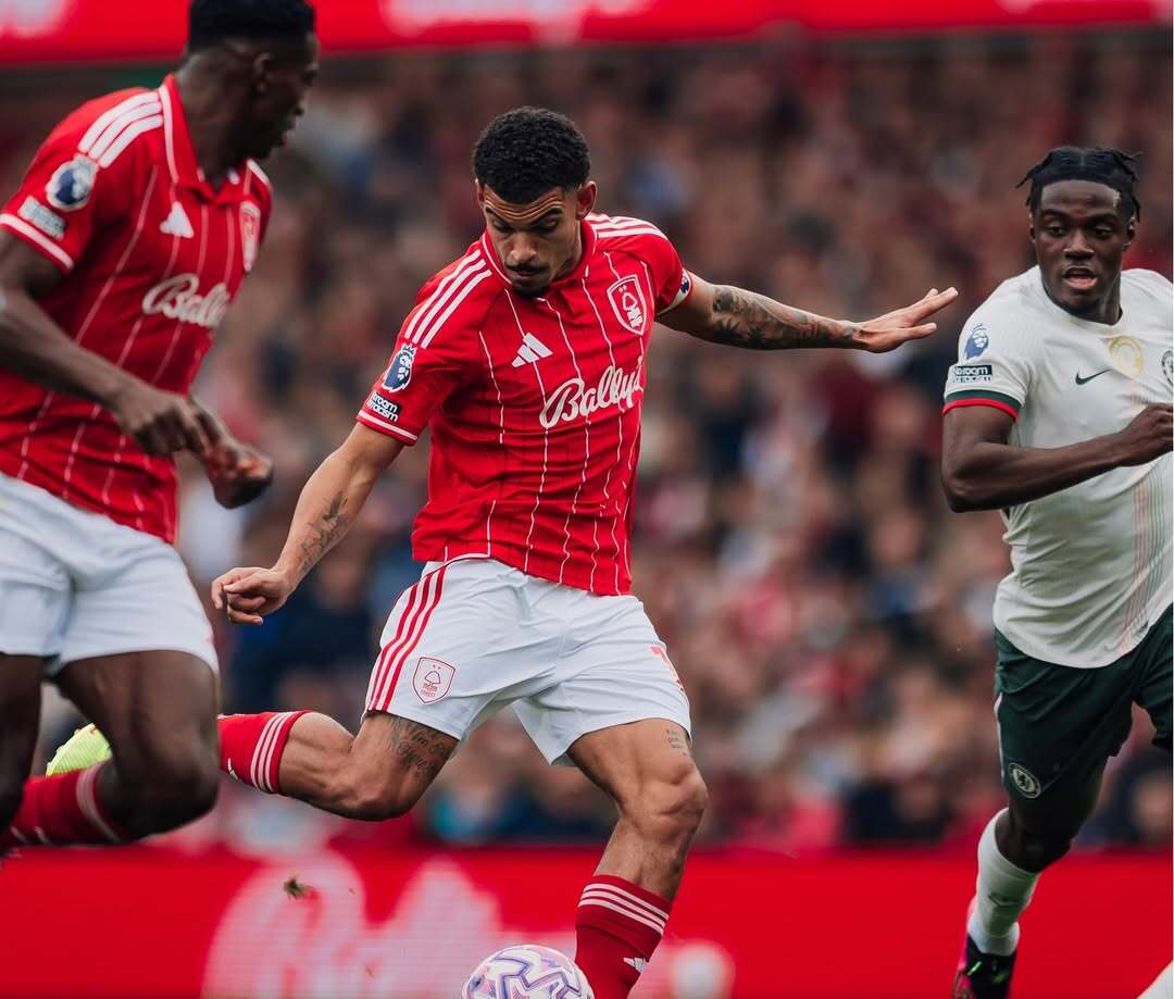 Aksi gelandang serang Nottingham Forest, Morgan Gibbs-White, ketika menghadapi lini pertahanan Chelsea. Sabtu, 18 Oktober 2025--instagram @officialnffc