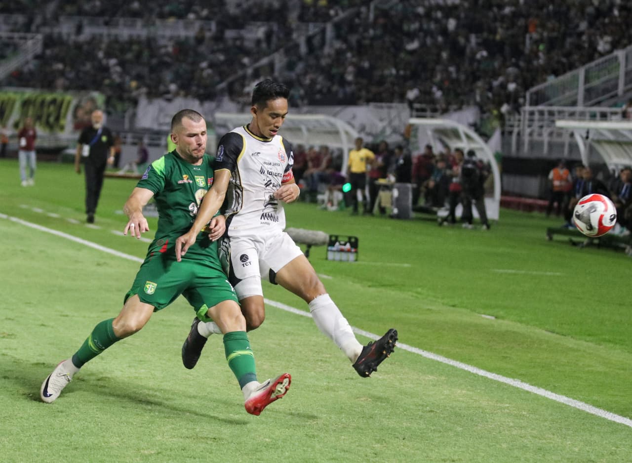 Bola yang dilepaskan dengan kaki kanan Dony berhasil menggetarkan jala gawang Persebaya yang dikawal oleh Ernando Ari.