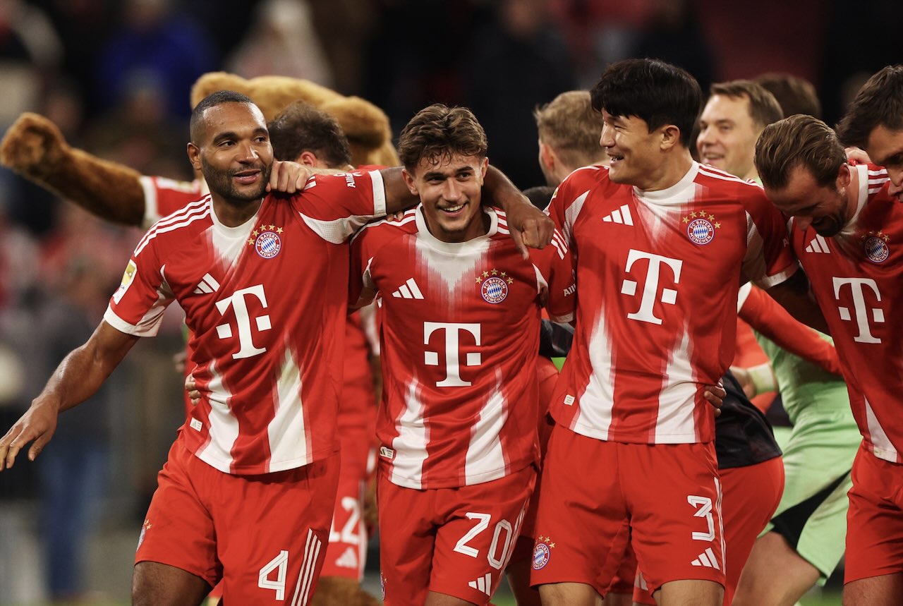Bayern vs Dortmund 2-1, Harry Kane jadi pembeda Der Klassiker. Foto: Para pemain Bayern merayakan kemenangan atas Borussia Dortmund, 19 Oktober 2025.-Bayern Munchen-