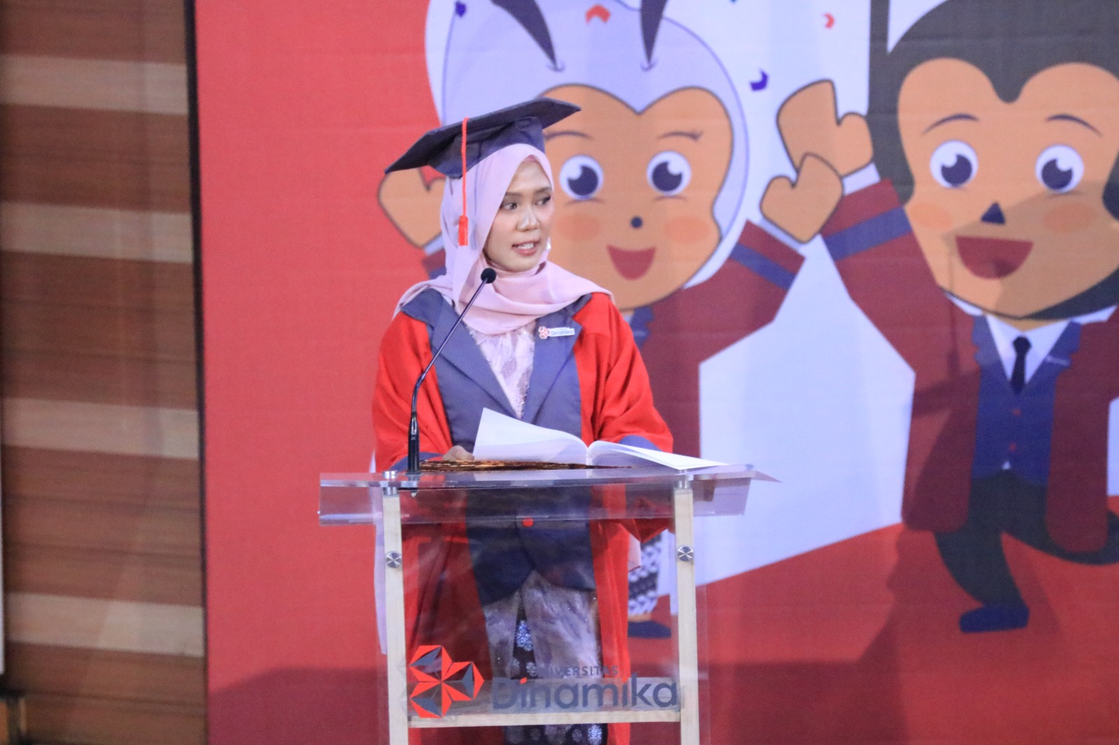 Puncak inspirasi adalah sambutan yang disampaikan Dwyanti. Dia meraih IPK 3.82 dari Program Studi S1 Akuntansi. Dwyanti yang juga peraih berbagai prestasi nasional itu memaparkan bagaimana teknologi dan soft skill menjadi krusial.