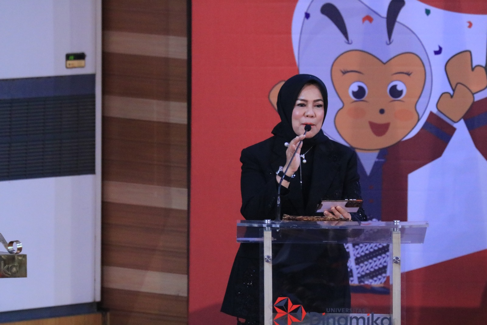 "Inilah alumni Universitas Dinamika. Inilah mahasiswa Universitas Dinamika. Itu harapannya, karena ini yang menjadi kekuatan kalau kita sebagai alumni itu betul-betul punya jiwa dengan hati yang santun, konstruktif, dan bermartabat," lanjut Prof. Dyah.