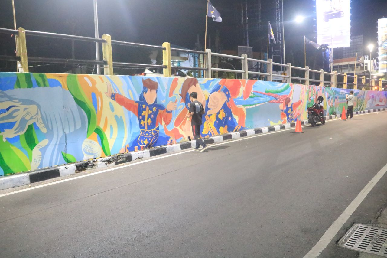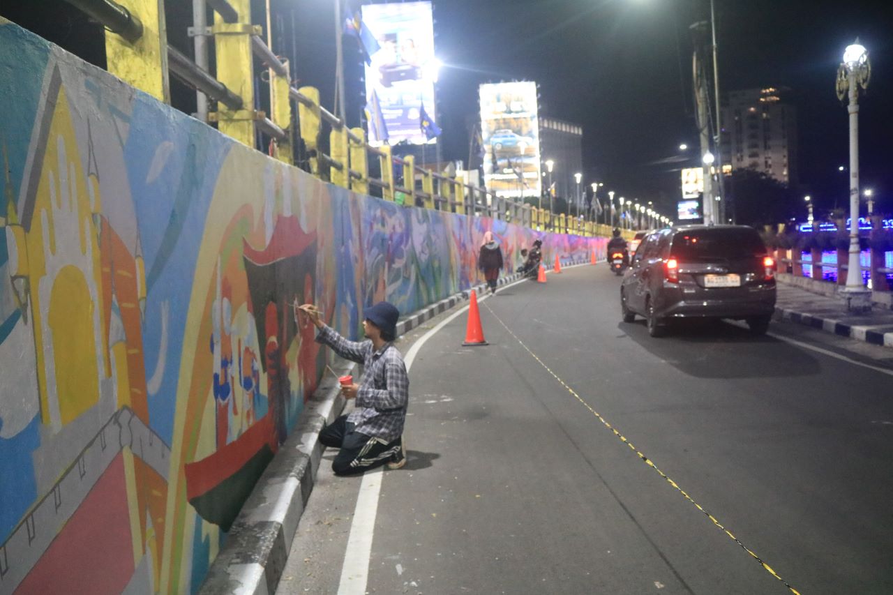 “Sisi yang satunya akan mulai kami mural pada Selasa nanti rencananya,” ujar sarjana seni rupa tersebut.