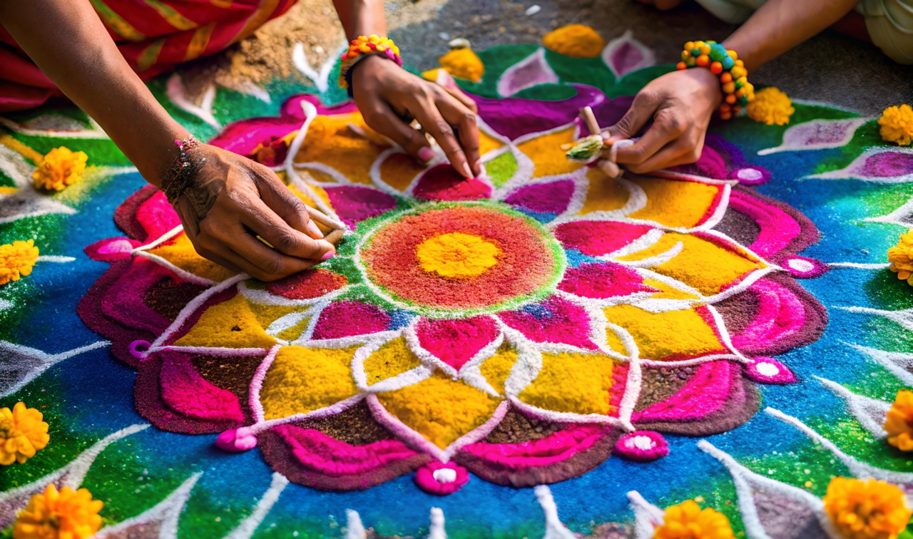 Potret Rangoli, pola-pola berwarna-warni yang digambar di lantai dalam perayaan Diwali--pexels.com
