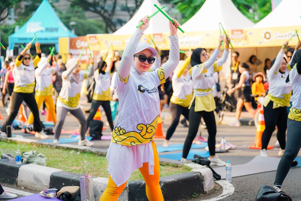 Kemeriahan acara semakin terasa dengan parade onthel bertema batik yang menyusuri pusat kota, menampilkan pemandangan penuh warna yang mencerminkan semangat kebanggaan nasional. Di area utama, sesi PoundFit berhasil menarik perhatian pengunjung untuk ikut bergerak dan menari bersama dalam suasana yang penuh energi positif.
