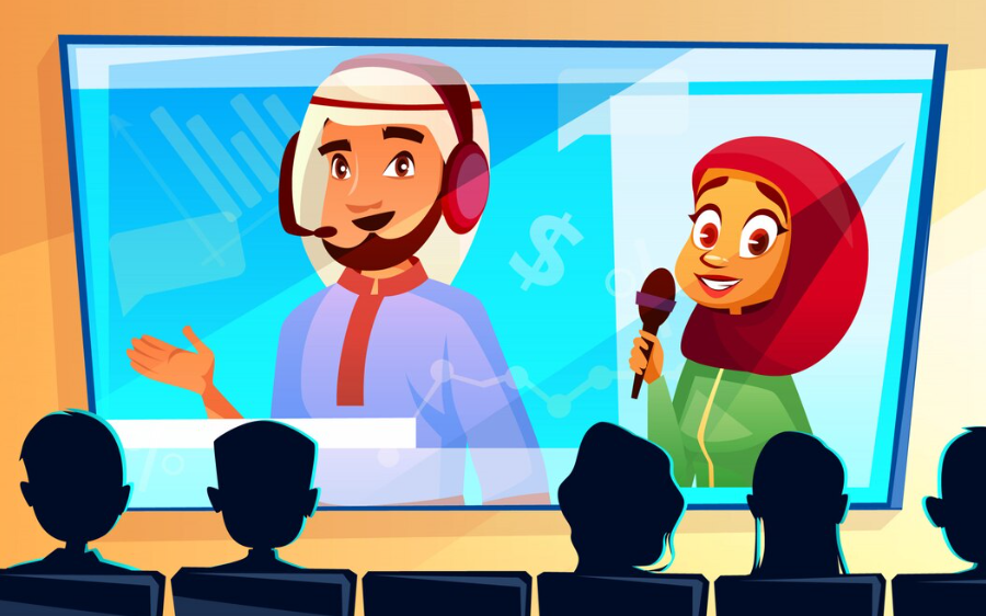ILUSTRASI santri menonton arsip sejarah perjuangan pendahulu dalam menegakkan nilai-nilai islam di Indonesia.-Freepik-
