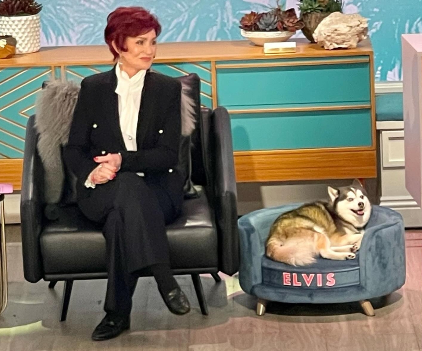 Sharon Osbourne dan Elvis yang menemaninya saat menjadi pembawa acara The Talk.-@sharonosbourne-Instagram